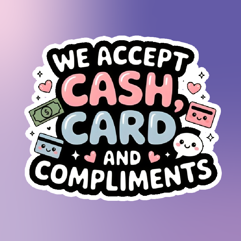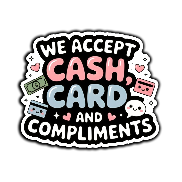 We Accept Cash Card and Compliments
